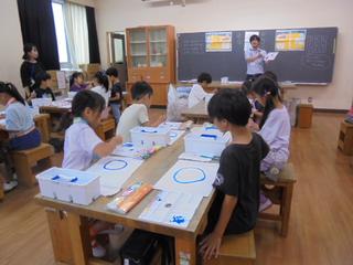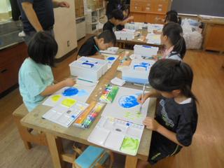 サクラクレパスから講師をお招きし、2年生の図工の授業で絵の具の使い方を教えていただきました。2年生にとっては、小学校で初めて本格的に絵の具を使う授業。筆を動かすたびに、「きれい!」「にじんだ!」と驚きと喜びの声があがっていました。講師の先生からは色の混ぜ方や水の使い方など様々な工夫を教えていただき、子供たちは夢中で取り組んでいました。完成した作品はどれも個性豊かで、のびのびと表現を楽しんでいる様子が伝わってきました。