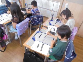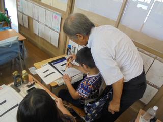 3年生が初めての毛筆学習に取り組んでいます。川崎市の国語研究会会長であられた先生にお越しいただき、筆の持ち方から筆づかいまで丁寧にご指導いただいています。子供たちと一緒に筆を持ち、じっくりと教えてくださる姿に子供たちも安心して取り組んでいました。