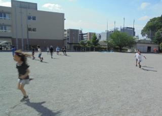 朝のまだ気温が高くなる前の時間帯に子供たちが元気いっぱいに校庭で遊んでいます。その様子を見かけると一日の始まりがとても清々しく感じられます。そんな子供たちのために、用務員が「わいわい広場」に遮光ネットを張ってくれました。これからも暑さ対策を継続して行っていきます。