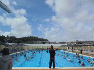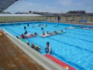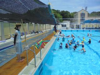 今日は夏らしい青空の下、1年生がプールに入りました。冷たい(地獄の?)シャワーを浴び歓声を上げるも、すぐに笑顔に!太陽に照らされてキラキラと光る水の中で気持ちよさそうに水遊びを楽しんでいました。本日もプールボランティアの皆様が見守ってくださり、安全に活動できました。暑い中ありがとうございました。