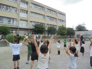 朝休みに、保健委員会が中心となってラジオ体操を行っています。校庭に集まるとスピーカーから流れる音楽に合わせて子供たちが元気よく体を動かす姿が見られます。このラジオ体操、参加すると保健委員会の上級生がスタンプを押してくれるという仕組みになっていて、体操が終わるとスタンプをもらうための長~い行列ができています。その光景は、まるで昭和の夏休みの朝を思い出させるようでどこか懐かしさを感じます。私もこのラジオ体操に参加しています。朝から体を大きく動かすと本当に一日が気持ちよく始められますね。子供たちと一緒に動くことで心も体もリフレッシュされ、今日も頑張ろう!という気持ちになります。保健委員会の皆さん、ありがとう!