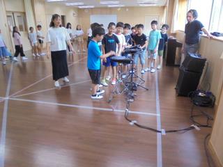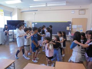 昨日と本日の2日間、電子打楽器奏者のマスキングさんが4年生全クラスに出前授業をしてくださいました。会場はマルチルーム。まずは音楽に合わせて手拍子や行進。その後はクラスで輪になり、みんなでリズム打ちをしました。実際に電子打楽器も叩かせていただき、子供たちは音の広がりや面白さに夢中になっていました。さらに休み時間には、有志の児童と教職員で「ライラック」(Mrs.GREEN APPLE)のライブを開催!聴きに来た子供たちとみんなで盛り上がりました。マスキングさん、素敵な時間をありがとうございました。