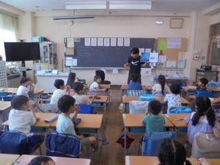 今日は夏休み前の読み聞かせの最終日です。朝の時間に、図書ボランティアの皆さまが1年生に読み聞かせをしてくださいました。 子供たちはお話に引き込まれ豊かな時間を過ごすことができました。その後、リーダーさんを中心にミニ研修を開催してくださいました。私も参加しました。ページのめくり方や余白・裏表紙の見せ方、絵本が安定する椅子の使い方など具体的な工夫を教えていただきました。読み聞かせの奥深さを改めて実感しました!もうすぐ始まる夏休みには、子供たちがたくさんの本に出会い、自由に楽しく読書に親しんでくれることを願っています。図書ボランティアの皆さま、いつも温かいご支援をありがとうございます。夏休み明けからもどうぞよろしくお願いいたします。