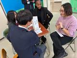 市立川崎高校の生徒たちとのグループワークでは、最初は少し緊張しながらも、ディスカッションが始まると、お互いに英語で意見を伝えようとする熱心な姿勢が見られました。