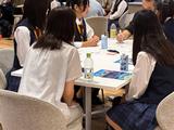 市立川崎高校の生徒たちとのグループワークでは、最初は少し緊張しながらも、ディスカッションが始まると、お互いに英語で意見を伝えようとする熱心な姿勢が見られました。