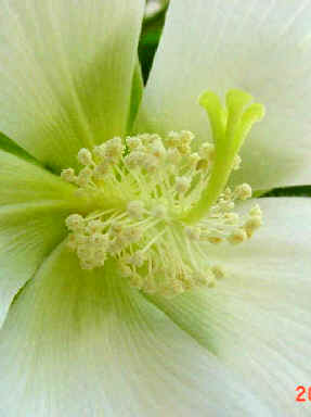 資料によると、普通はあわい赤い色をしていますが、時には写真のように白い色のものもあるそうです。赤い色の種類と同じで、朝開くともう夕方には閉じてしまいます。