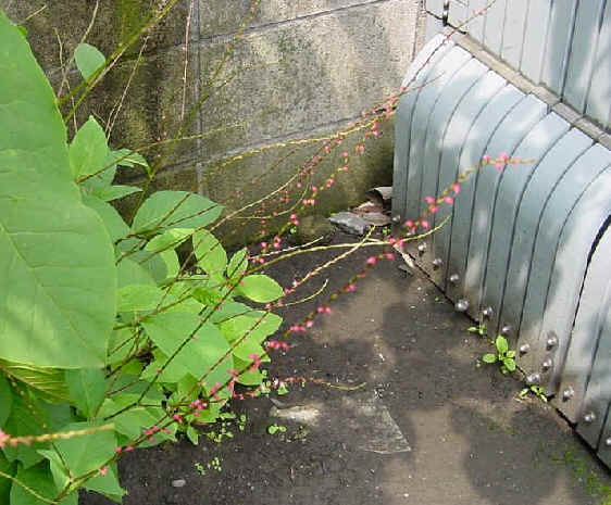 皆さんは、ミズヒキってご存じですか。お祝いの袋などを包む時に結ぶ紅白のひものことです。この花をそのように見立てて、この名前が生まれたものだそうです。昔からものを書く人や茶道や華道に関係する人達に好まれた花のようで、庭などによく植えたのだそうです。この花も庭に植えられていました。